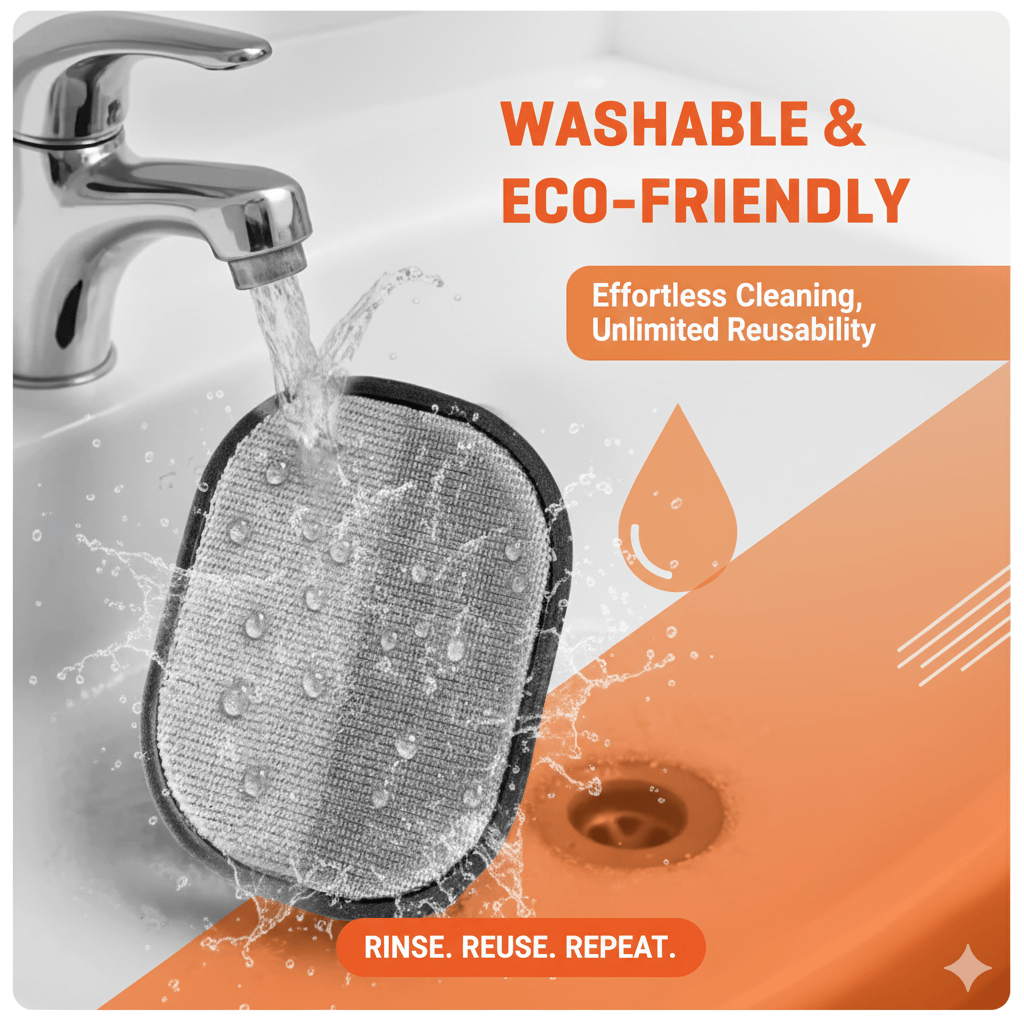 Simply rinse under warm water, shake off excess, and air-dry. Ready to use again in minutes.